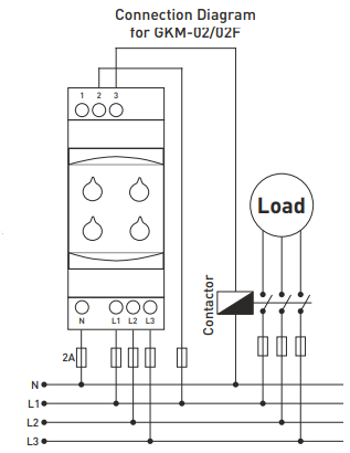 Three-phase monitoring/protection relay for checking overvoltage, undervoltage, sequence, phase failure with timer. GKM-02/02F (ACTIVATED)