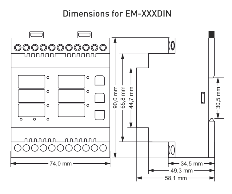 - Meettransformator inbegrepen (EM-100DIN en EM-250DIN).