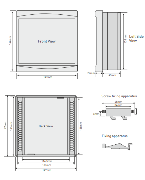 De digitale verwerking van de door de regelaar gemeten waarden zorgt voor een hoge nauwkeurigheid bij de evaluatie van de effectieve spanning, stroom en arbeidsfactor.