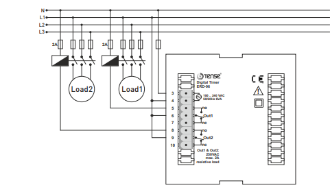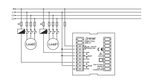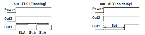 Tijdrelais met twee functies - een inschakelvertragingsfunctie en een cyclische relaisfunctie.